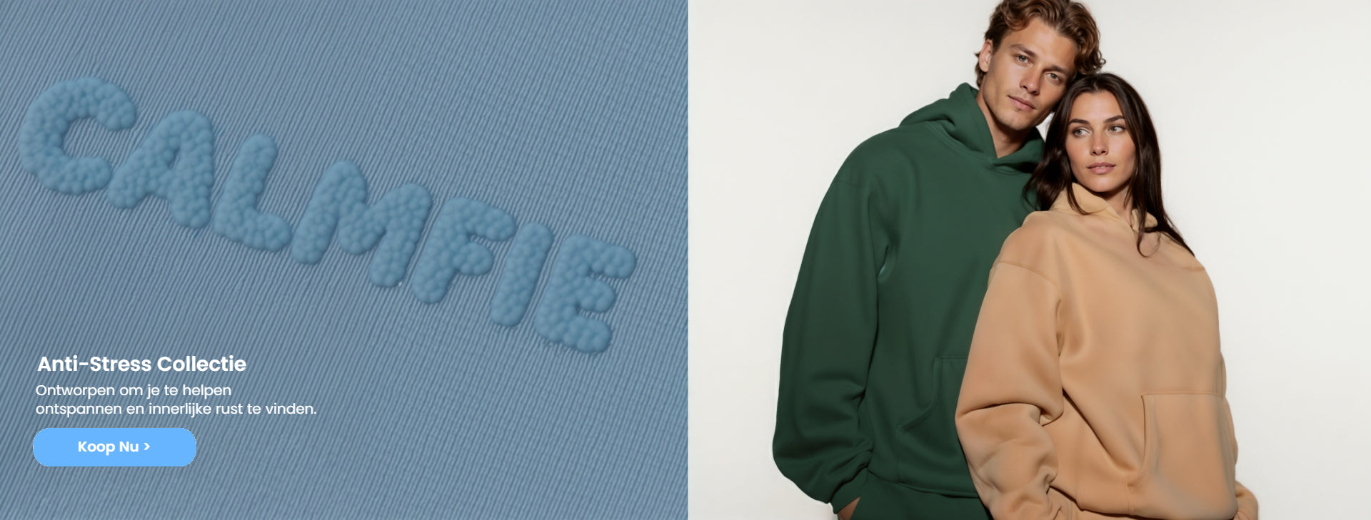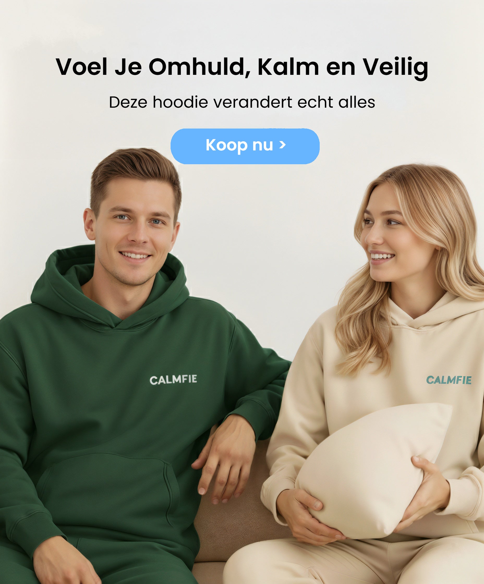 Onze superzachte CalmCloud™ heeft een kangoeroezak en een ruime, dubbel gevoerde capuchon. De hoodies zijn licht verzwaard en hebben een oversized pasvorm — veel klanten zeggen dat ze hebben geholpen om angst en stress te verminderen.